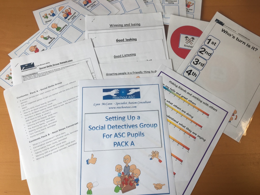 Resources for Setting Up A Social Dectectives Group For Autistic Pupils has been developed over many years through our direct work with pupils. It is aimed at Primary and lower secondary aged pupils. We have used these resources successfully at the beginning of Secondary school to help build friendships and confidence in the new environment that Year 7s have to navigate. It is designed to be used alongside board and card games but could also work alongside Lego and other practical play activities where co-operation and communication is the key to achieving the task.